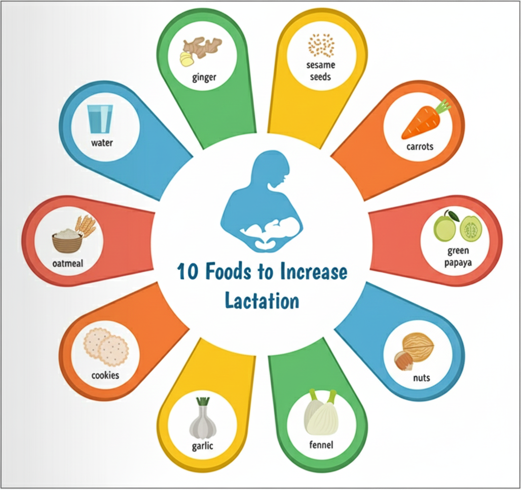 8. Surya Hospital. Breast milk increasing foods: Indian diet chart for lactating mothers [blog]. Surya Hospital; 2025.